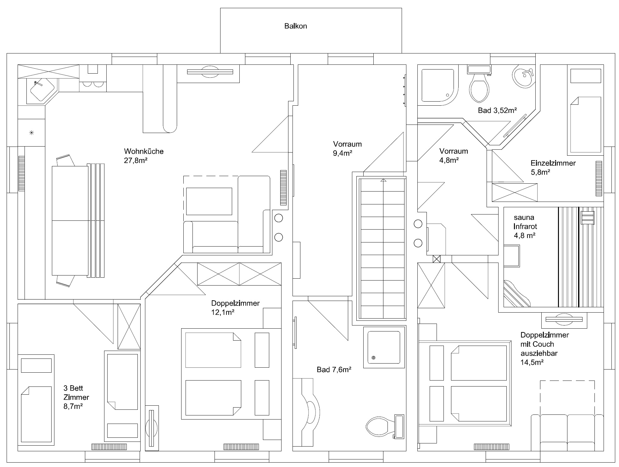 Unsere mit 4-Edelweiß ausgezeichnete Ferienwohnung im Ausmaß von ca. 100m2 bietet Platz für bis zu 8 Personen und befindet sich im 2.Stock.